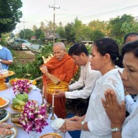 พิธีวางฤกษ์ลงเสาเอกป้ายชื่อโรงเรียนปากพูนโดยพระครูพิศาลวิหารวัตร (พ่อท่านบุญให้ ปทุโม) เจ้าอาวาส